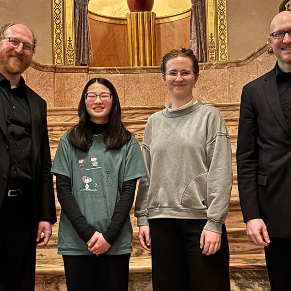 Among its ranks, The Cleveland Orchestra boasts six members who are alums of The Cleveland Orchestra Youth Orchestra (COYO). Two of these players — second violinist Jeffrey Zehngut (far right) and his brother, violist Gareth Zehngut (far left) — recently sat down with two current musicians in COYO: violinist Cyprus Foster (center right) and oboist Eliana Fittante (center left). Their conversation ran the gamut, from what brought them to COYO to their advice for young musicians to what they like to do outside of music.