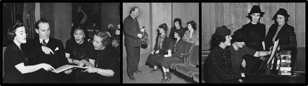 Meanwhile, the Speakers’ Committee replaced the Extension Committee, organizing dozens of Music Appreciation lectures around the region while the Program Interpretation Committee secured experts for pre-concert talks. In 1937, an additional lecture series was organized for the Halle Brothers Co. (a locally owned department store), and by 1938, the Severance pre-concert lectures were so popular that they needed to be moved from the Board Room into the Chamber Hall, where they are held to this day. With help from Halle, the Women’s Committee sponsored a special lecture by fashion designer Elsa Schiaparelli in the spring of 1941, helping set a new record for annual contributions to the Orchestra Fund. This fashion focus would become a central source of fundraising in the 1960s–80s.