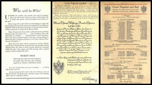 Guests, musicians, and Committee members dressed as historical figures in period costumes, many rented from New York. Some notable examples included pianist Arthur Shepherd as Haydn and Assistant Conductor Rudolf Ringwall as Mozart. Attendees paid $12.50 for tickets and were instructed to wear powdered wigs and period ribbons. The Orchestra offered a brief performance, and Music Director Nikolai Sokoloff led 20 prominent Clevelanders in a gavotte. Despite the high ticket prices and wealthy guests (not to mention the fact that the musicians donated their services), the event fell far short of its $4,000 fundraising goal. Luckily, a few generous last-minute donations wiped away the deficit and rendered the opulent event a success in the end.