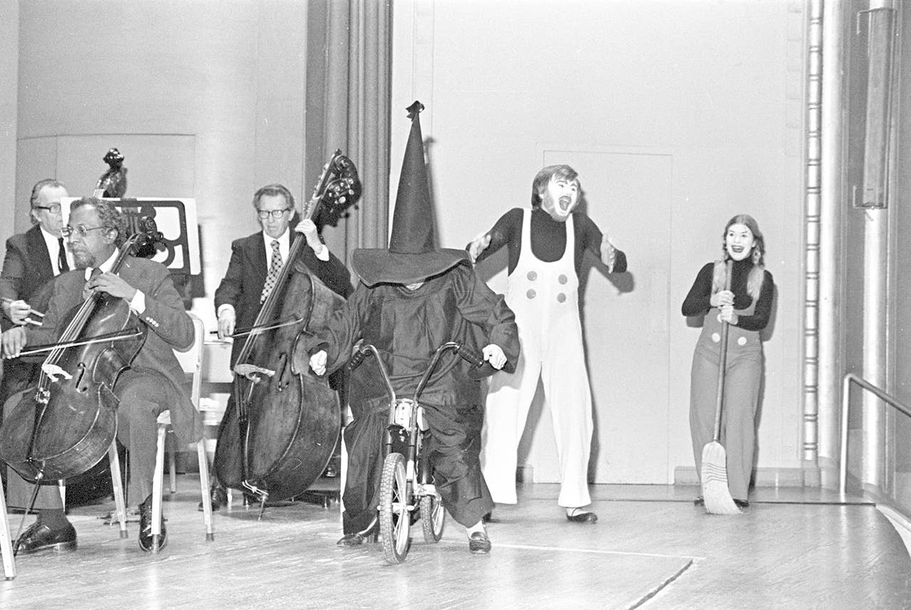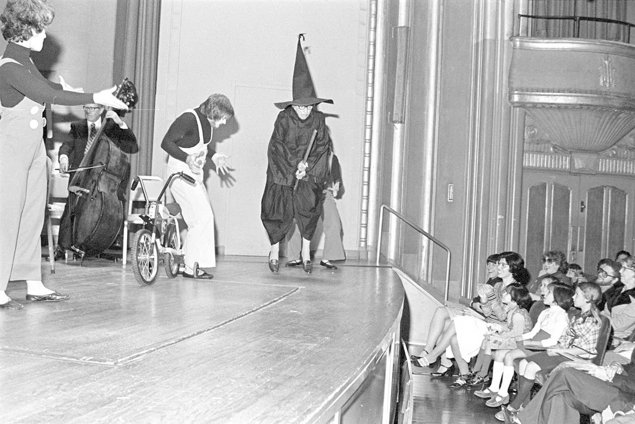 In 1977, shortly after these engagements, Margaret Hamilton was a special guest at The Cleveland Orchestra’s “Hallowe’en Happenings” Children’s Key Concerts, on October 29 and 30. Hamilton met young performers in the lobby before the concert and appeared on stage both as herself and as a rather mischievous Wicked Witch of the West, stealing prop bikes and audience members’ hearts.